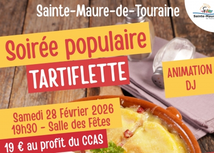 La Ville de Sainte-Maure-de-Touraine organise une soirée populaire tartiflette au profit du CCAS, placée sous le signe de la convivialité et du partage.
