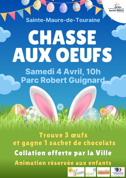 La Ville de Sainte-Maure-de-Touraine organise une chasse aux œufs à destination des enfants, le samedi 4 avril à partir de 10h, au parc Robert Guignard.