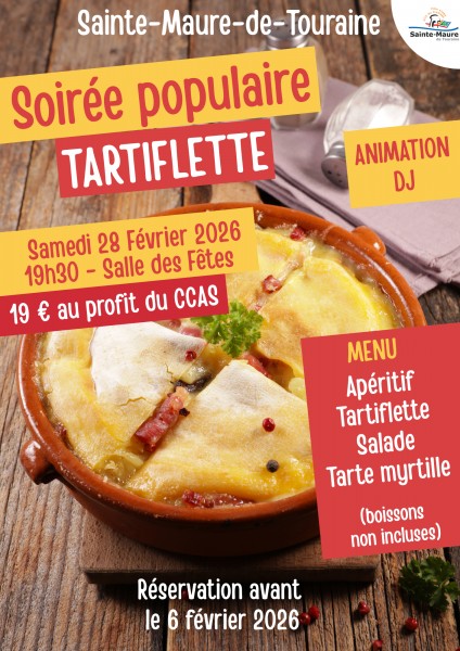 La Ville de Sainte-Maure-de-Touraine organise une soirée populaire tartiflette au profit du CCAS, placée sous le signe de la convivialité et du partage.