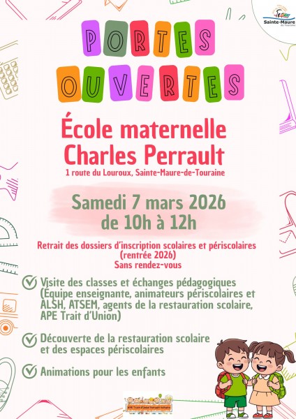 La municipalité, en partenariat avec l’APE et l’équipe pédagogique, a le plaisir de vous inviter à la porte ouverte de l’école maternelle Charles Perrault, le vendredi 7 mars de 10h à 12h.